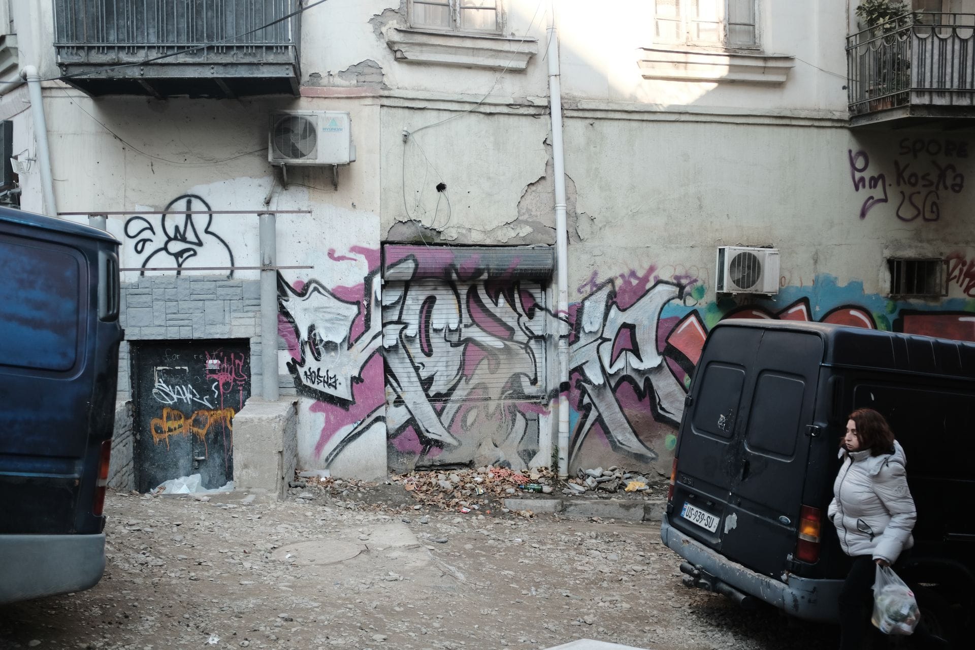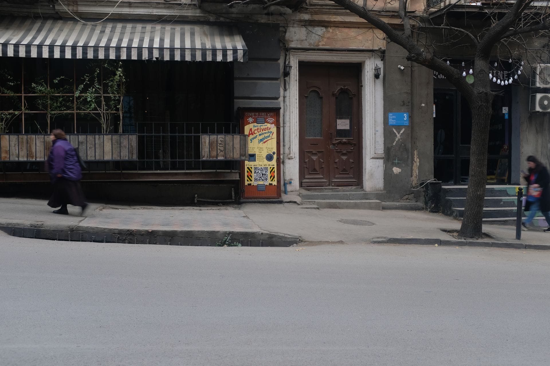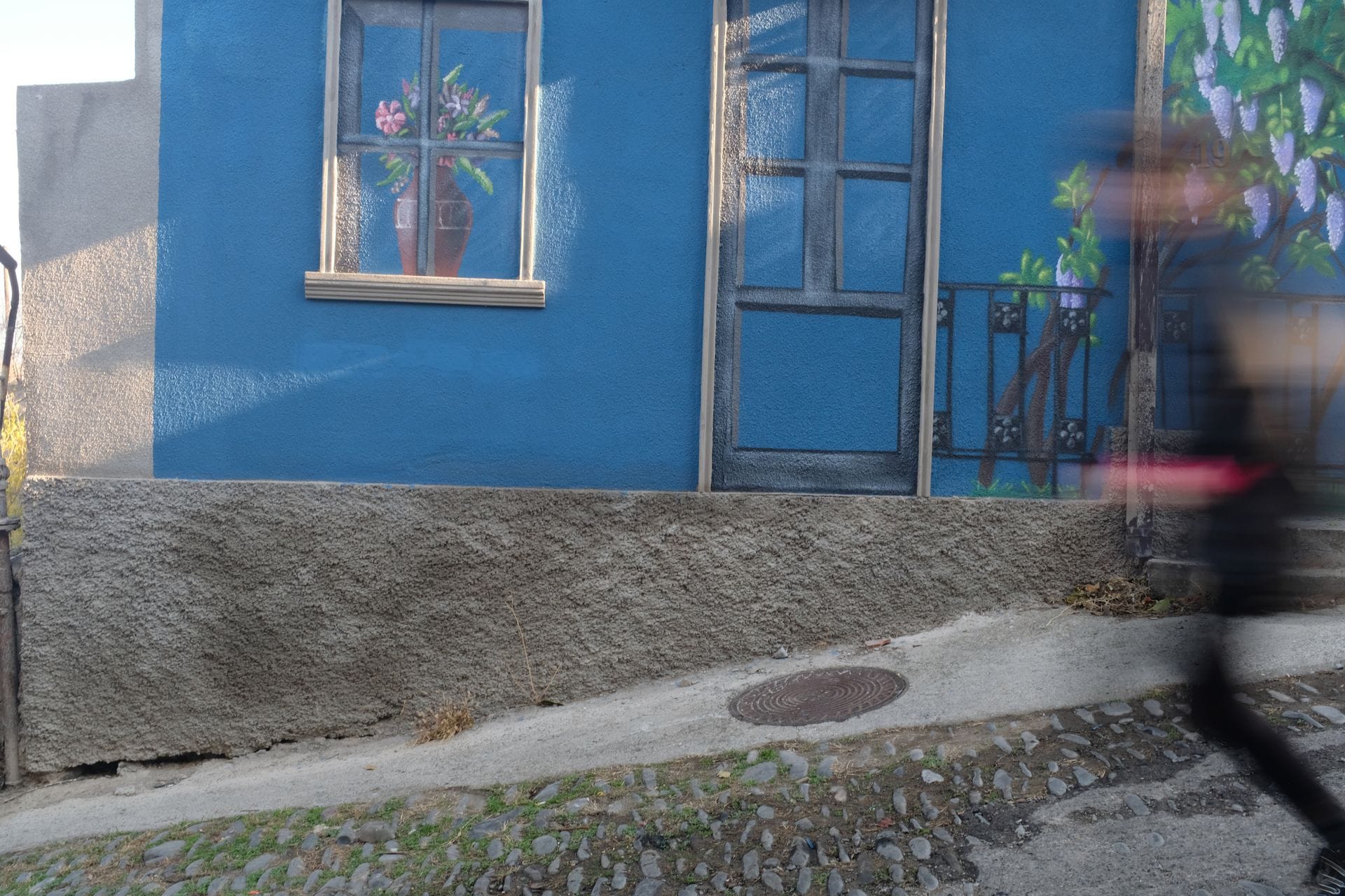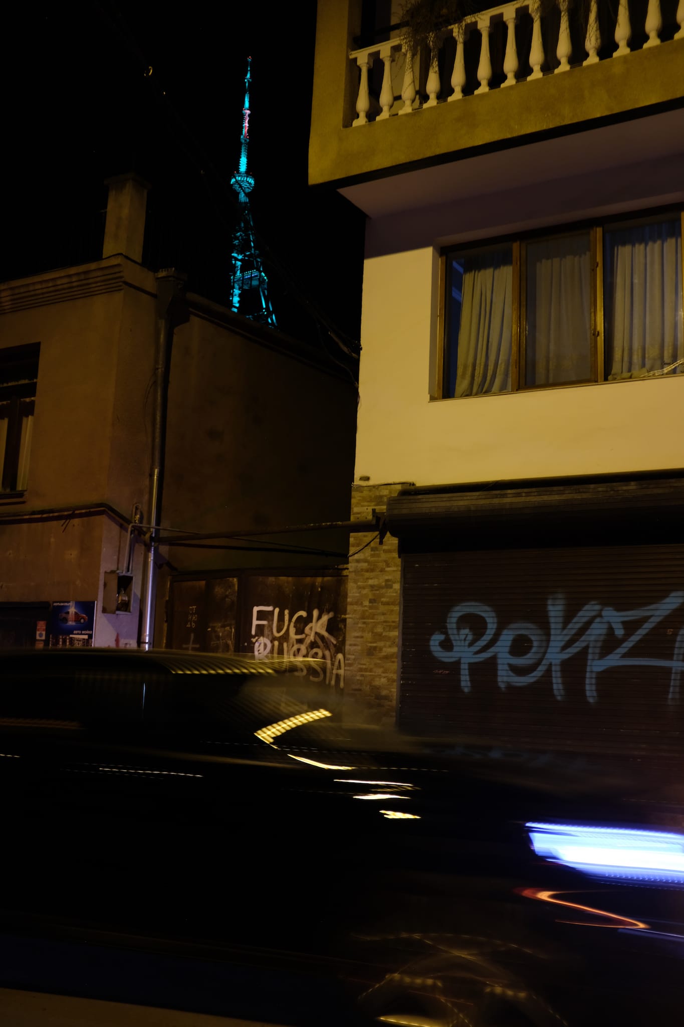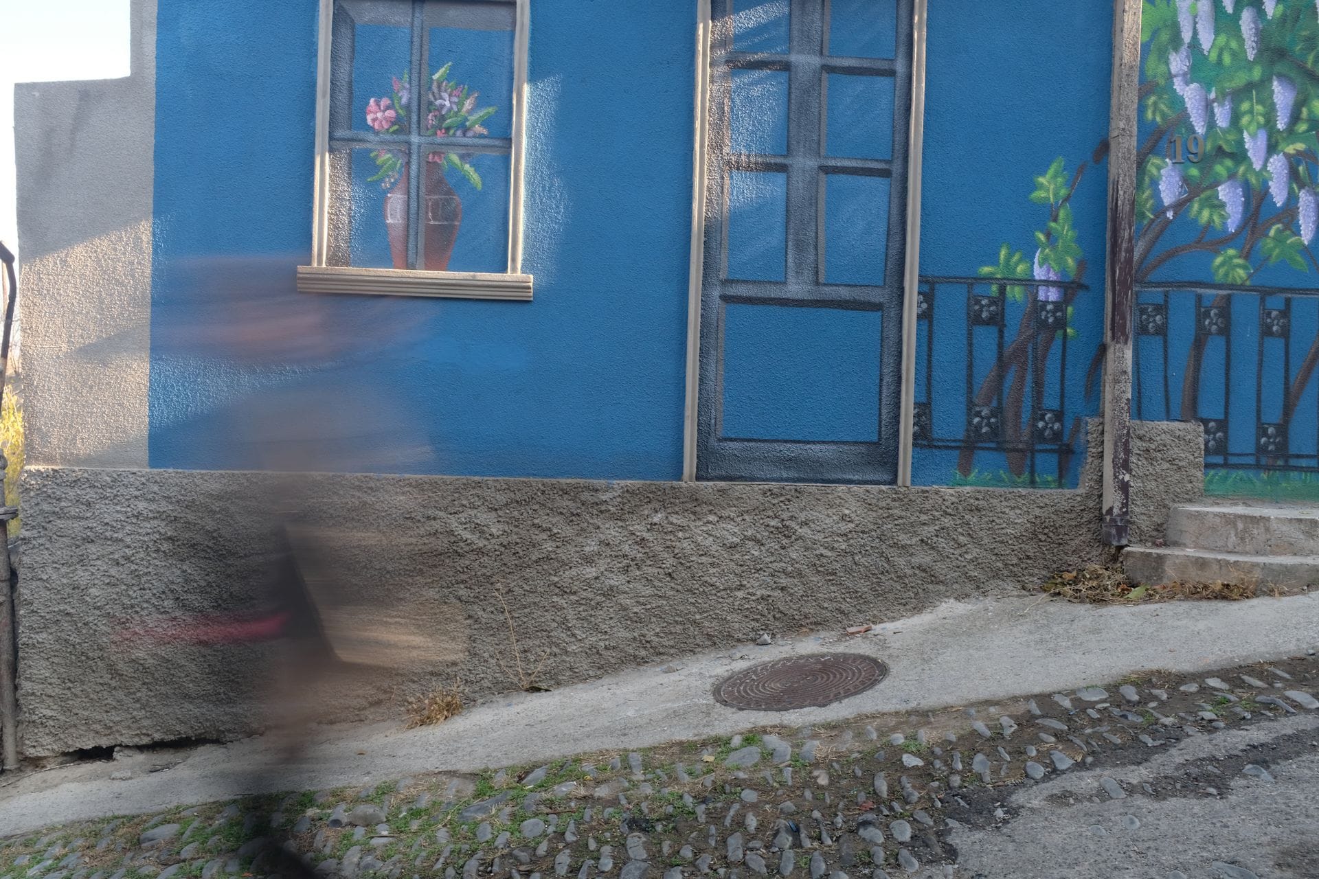 Also wahllos. 2. Tag: sich der Kamera verweigern, bis eine erste Idee kommt. Zum Beispiel die Diptichen Statik (1/125) vs. Bewegt (1/15). Oder und kombiniert mit „fuck putin“ Graffiti in Tiflis am 17.11.2022. Erst ab 3. Tag ist effektives Arbeiten (nach Auswertung des zweiten) möglich. Ergebnisse siehe Grosswetterlage.com: "Face of/f Tbilisi", teils auch "Istanbul revisited".