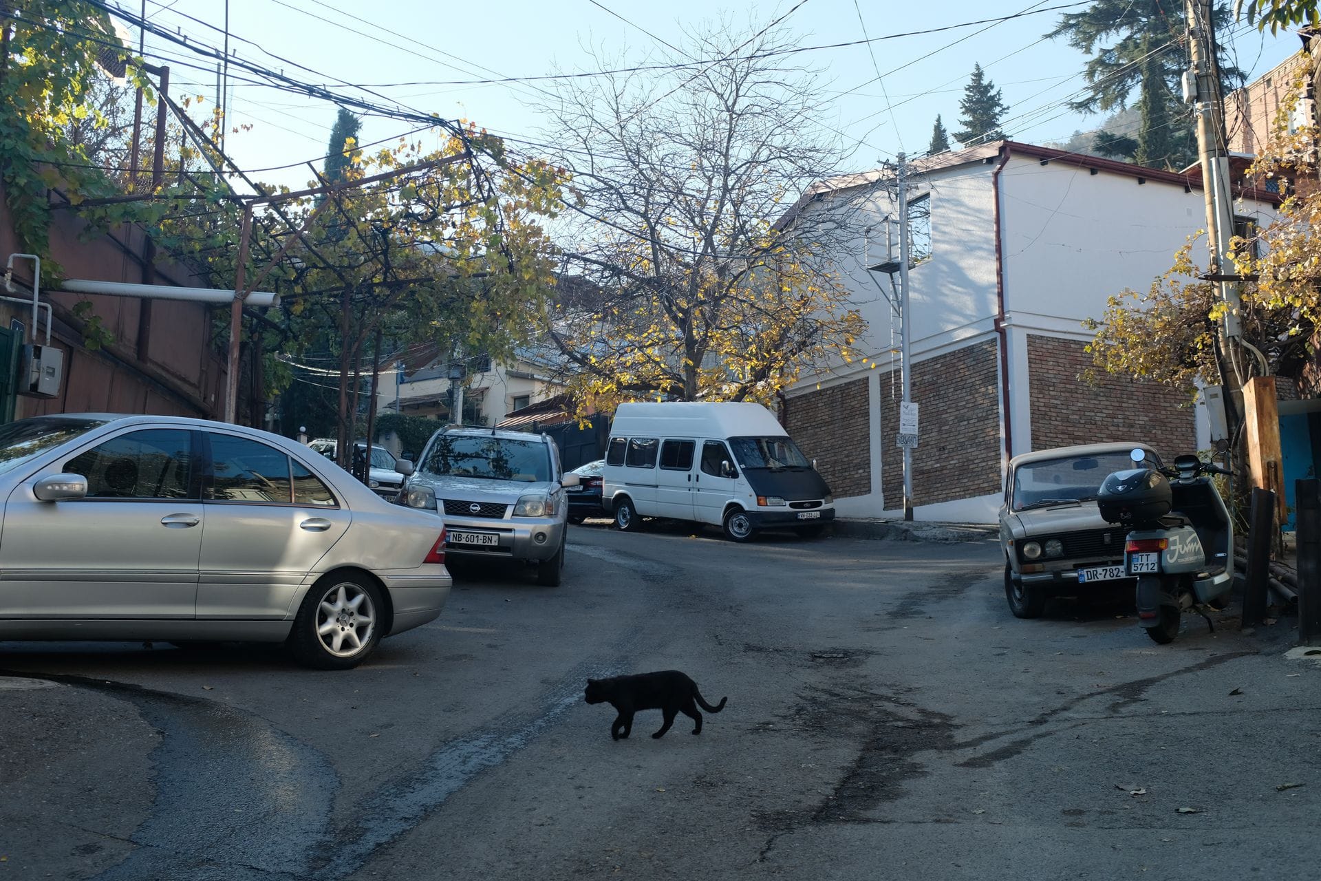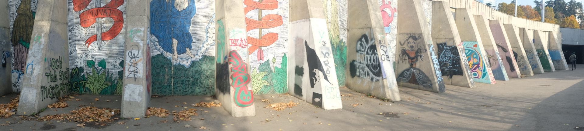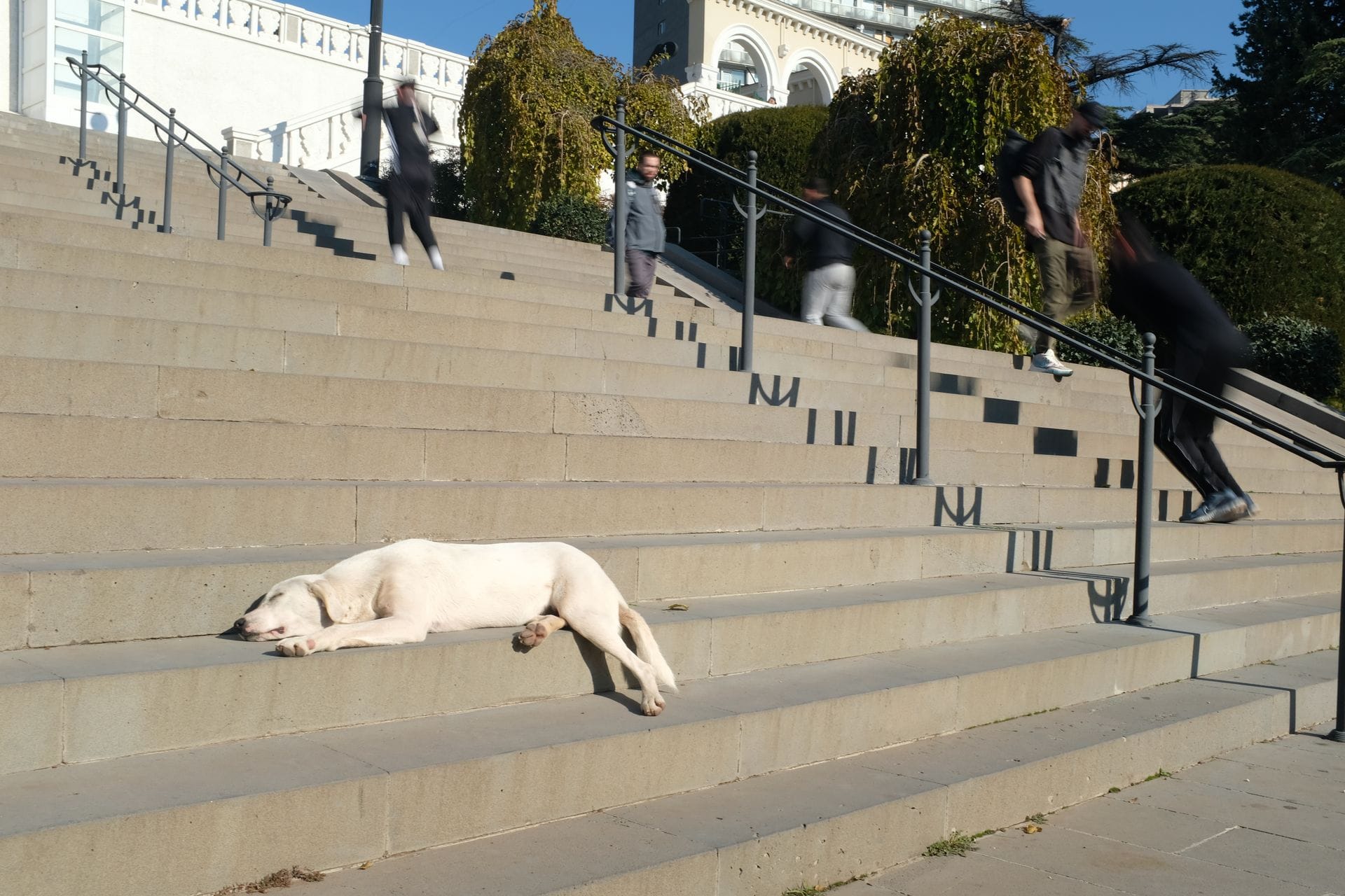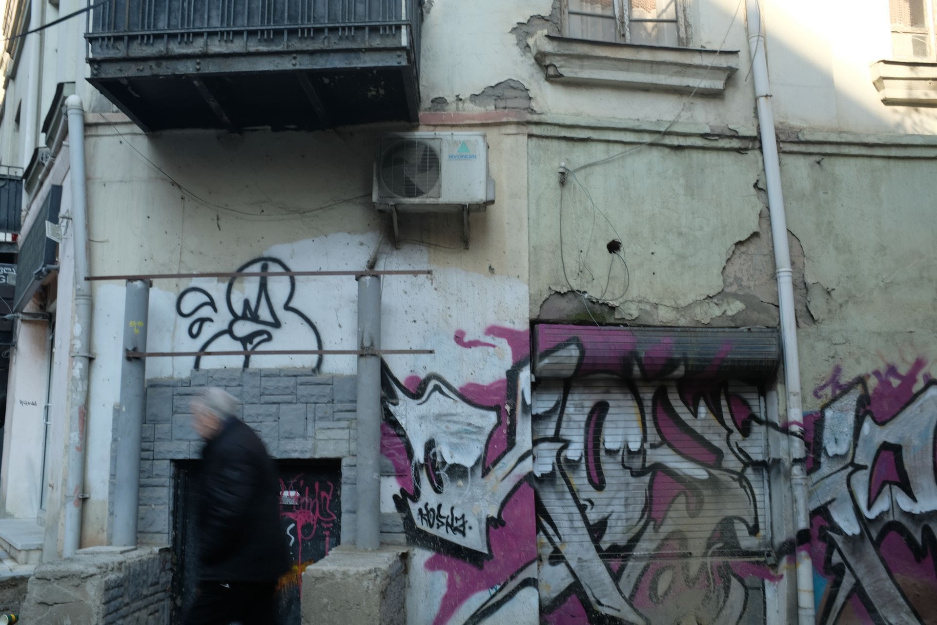 Also wahllos. 2. Tag: sich der Kamera verweigern, bis eine erste Idee kommt. Zum Beispiel die Diptichen Statik (1/125) vs. Bewegt (1/15). Oder und kombiniert mit „fuck putin“ Graffiti in Tiflis am 17.11.2022. Erst ab 3. Tag ist effektives Arbeiten (nach Auswertung des zweiten) möglich. Ergebnisse siehe Grosswetterlage.com: "Face of/f Tbilisi", teils auch "Istanbul revisited".