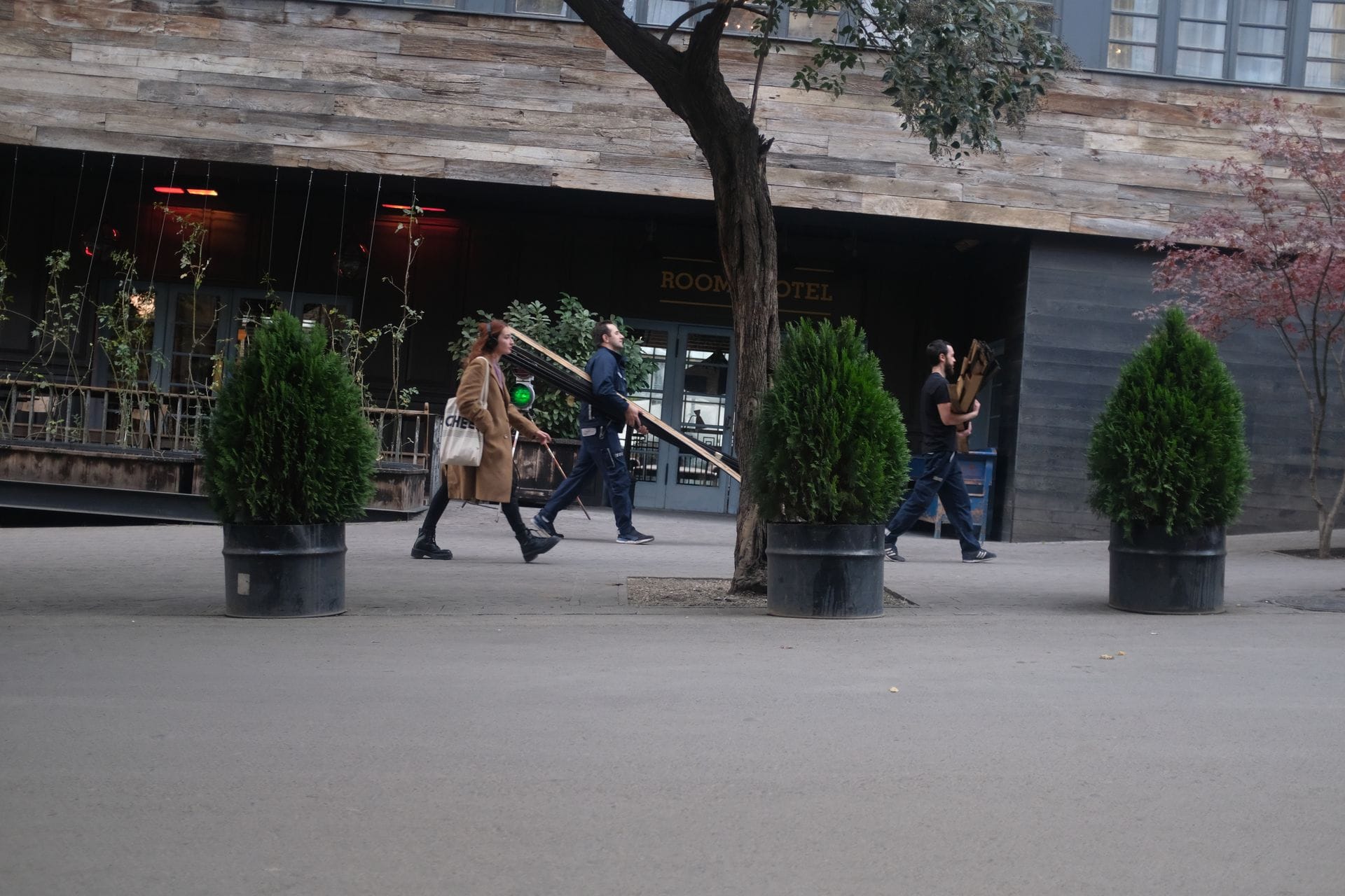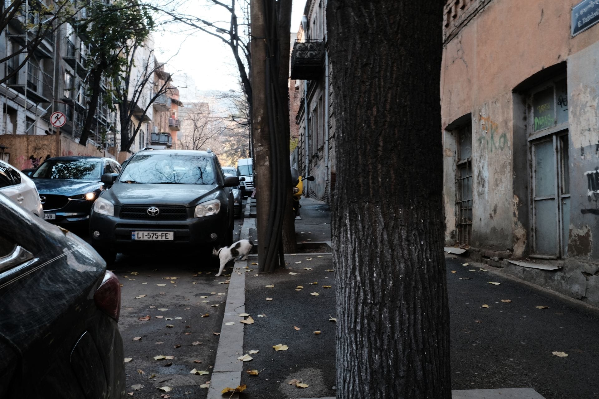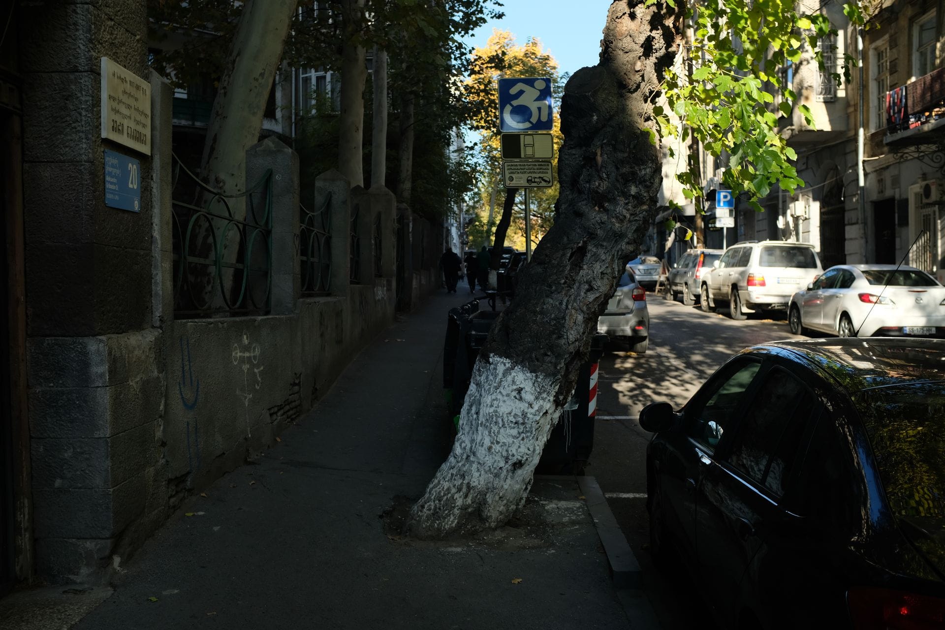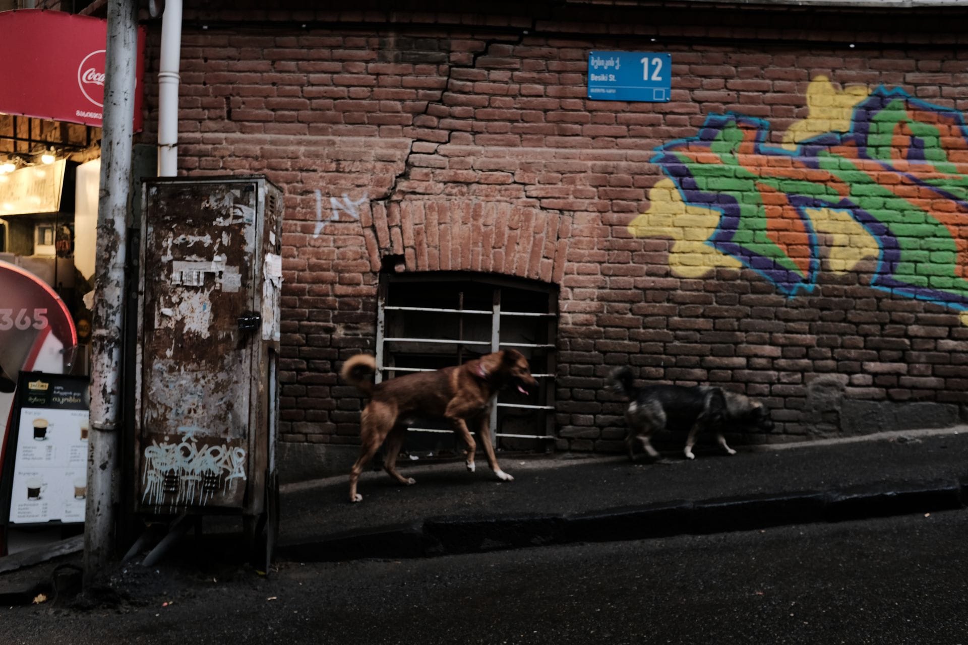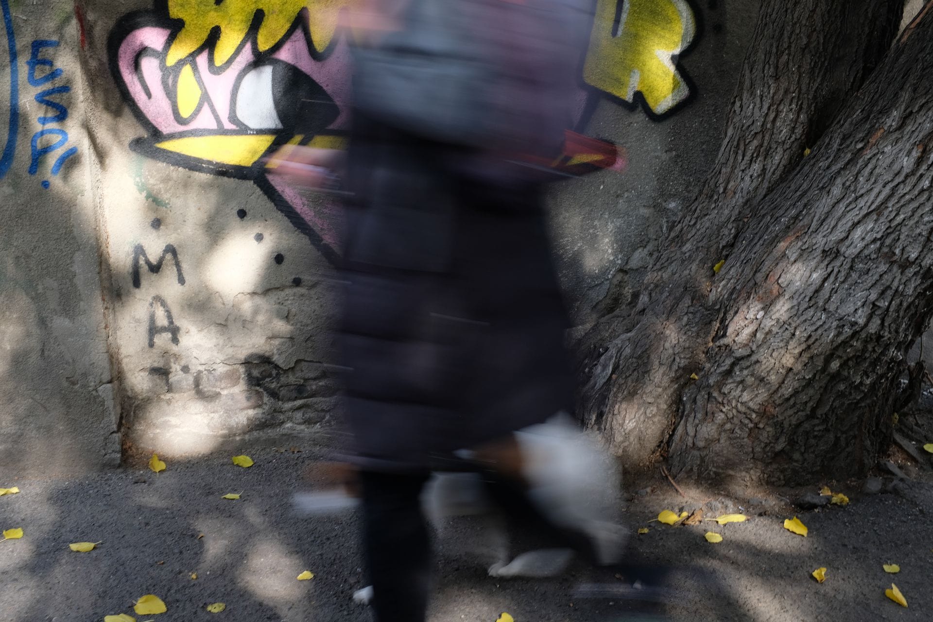 Also wahllos. 2. Tag: sich der Kamera verweigern, bis eine erste Idee kommt. Zum Beispiel die Diptichen Statik (1/125) vs. Bewegt (1/15). Oder und kombiniert mit „fuck putin“ Graffiti in Tiflis am 17.11.2022. Erst ab 3. Tag ist effektives Arbeiten (nach Auswertung des zweiten) möglich. Ergebnisse siehe Grosswetterlage.com: "Face of/f Tbilisi", teils auch "Istanbul revisited".