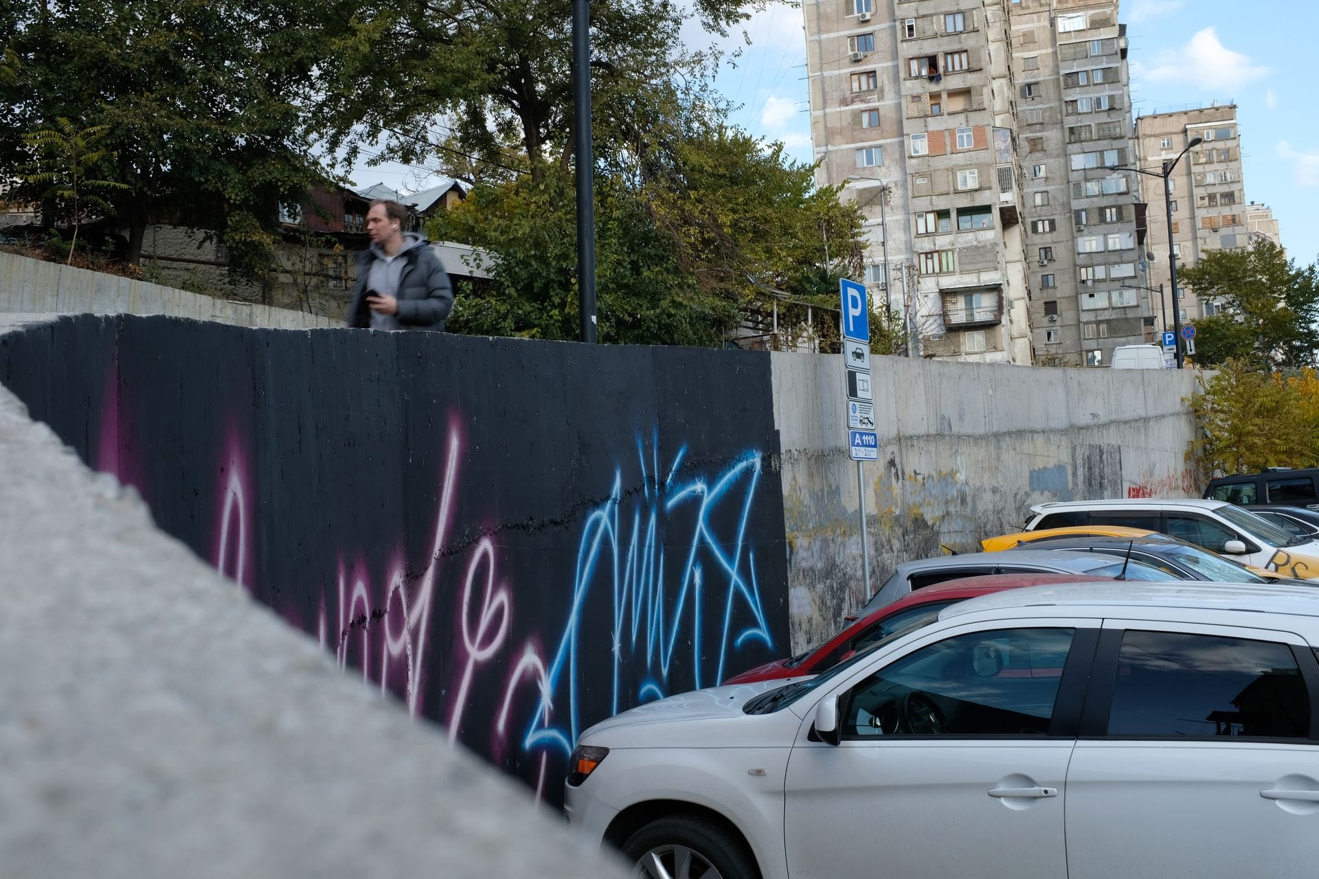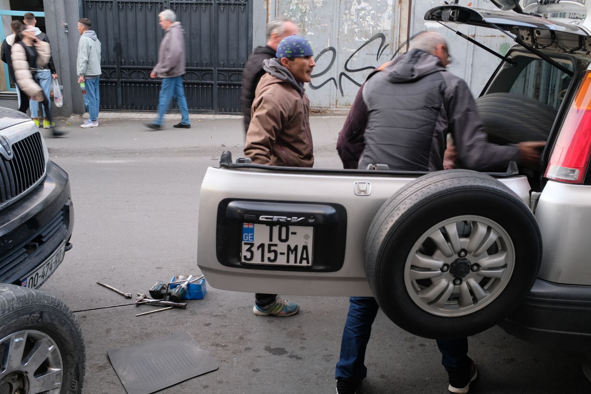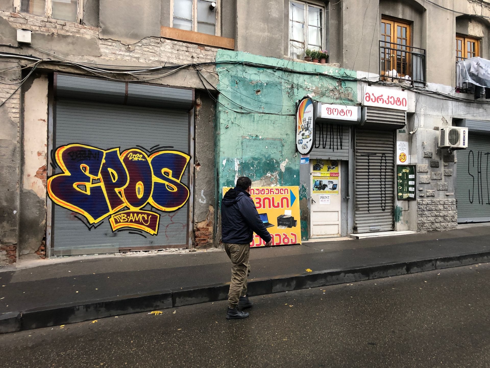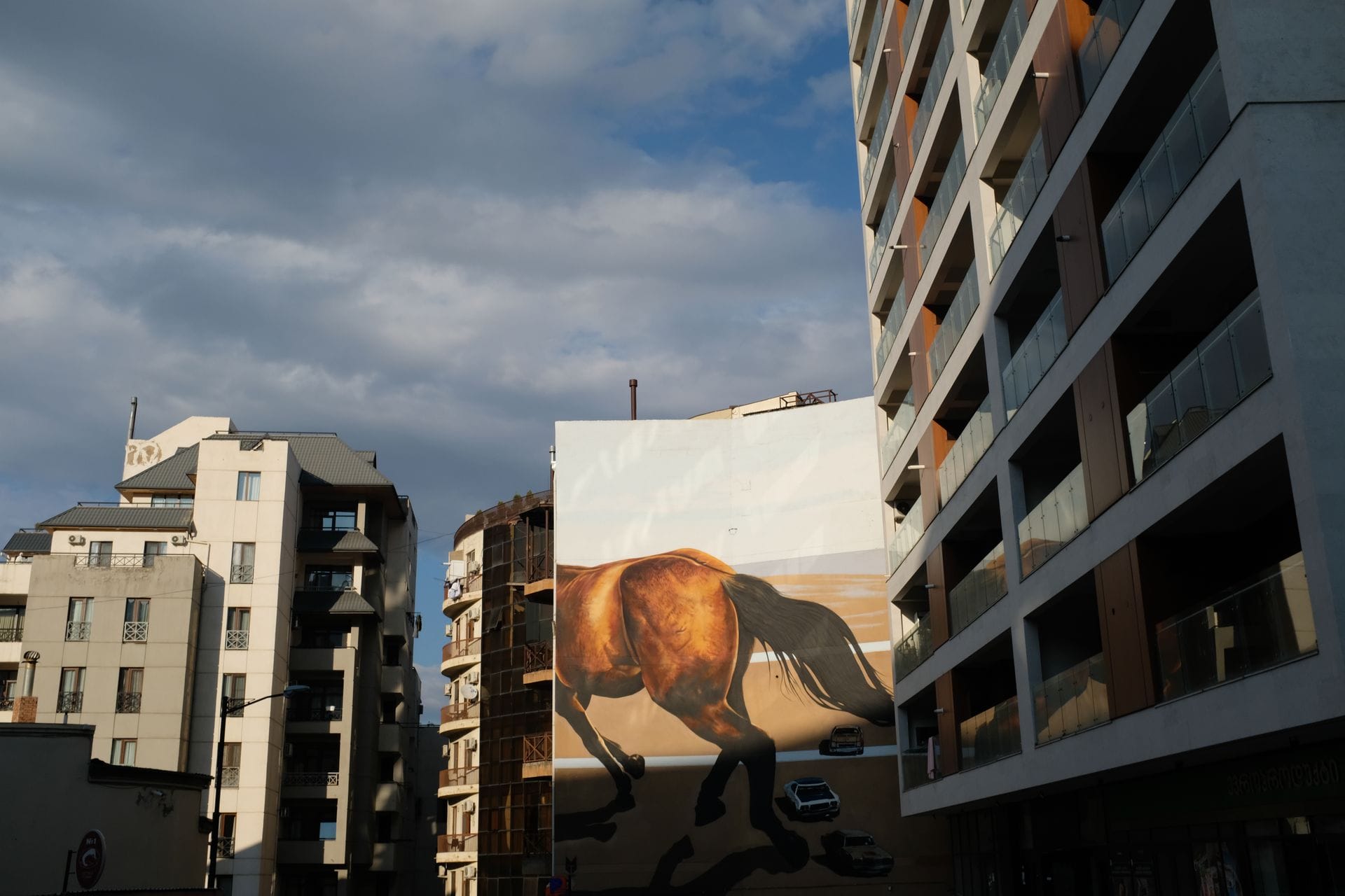 Also wahllos. 2. Tag: sich der Kamera verweigern, bis eine erste Idee kommt. Zum Beispiel die Diptichen Statik (1/125) vs. Bewegt (1/15). Oder und kombiniert mit „fuck putin“ Graffiti in Tiflis am 17.11.2022. Erst ab 3. Tag ist effektives Arbeiten (nach Auswertung des zweiten) möglich. Ergebnisse siehe Grosswetterlage.com: "Face of/f Tbilisi", teils auch "Istanbul revisited".