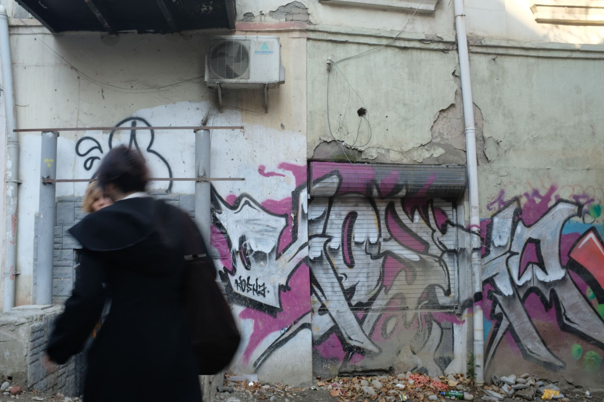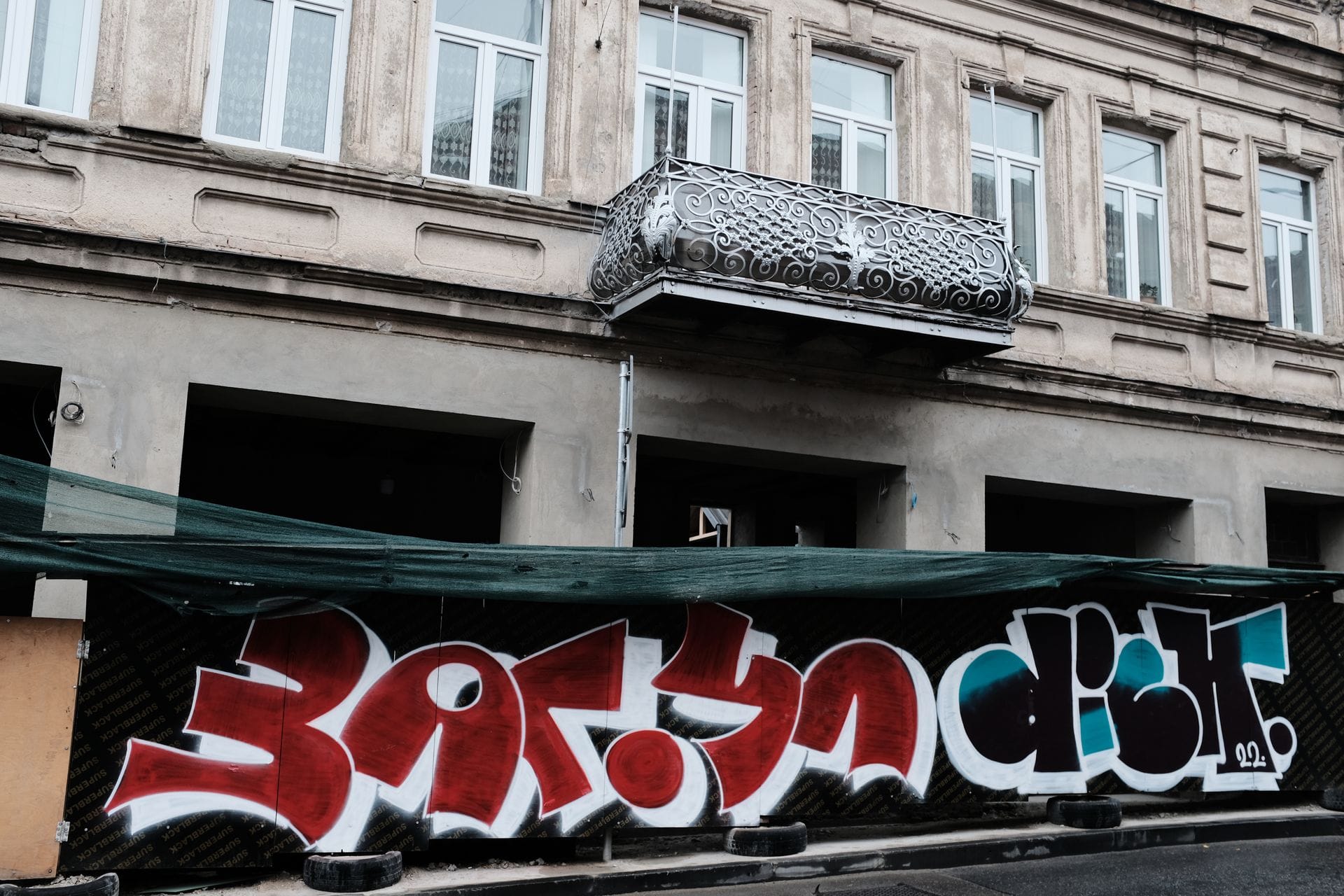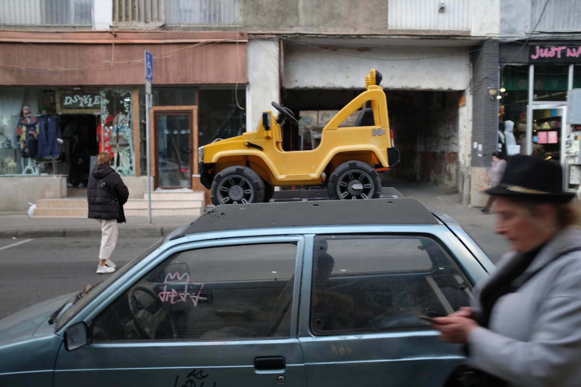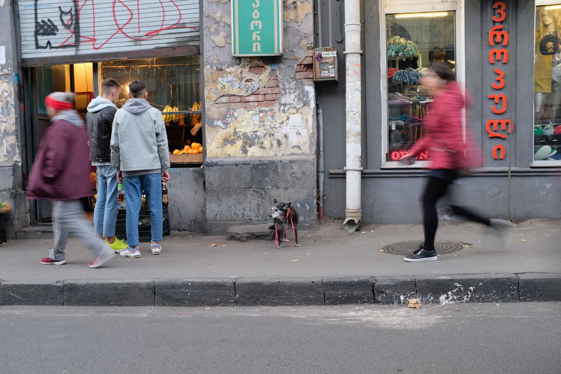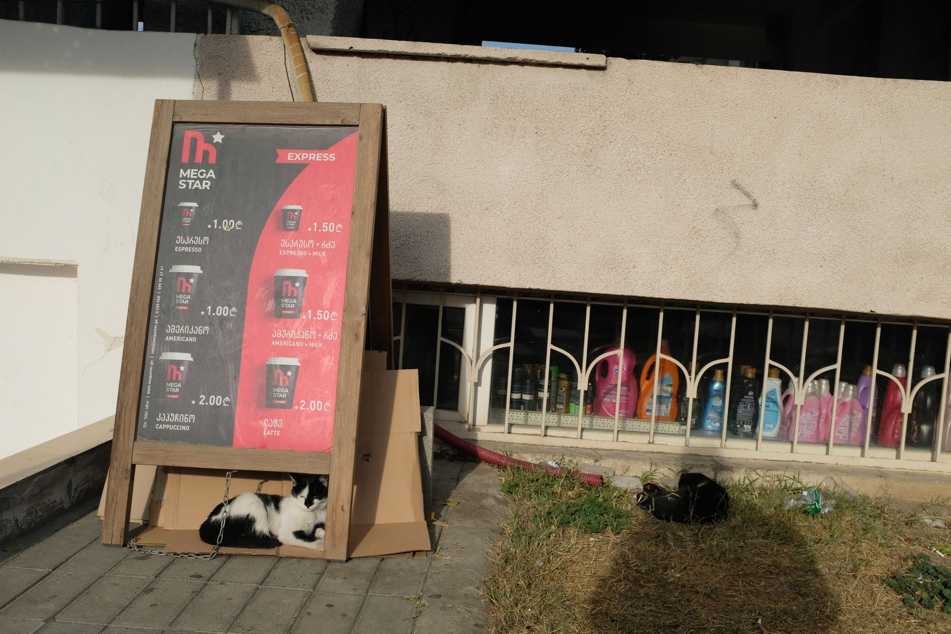 Also wahllos. 2. Tag: sich der Kamera verweigern, bis eine erste Idee kommt. Zum Beispiel die Diptichen Statik (1/125) vs. Bewegt (1/15). Oder und kombiniert mit „fuck putin“ Graffiti in Tiflis am 17.11.2022. Erst ab 3. Tag ist effektives Arbeiten (nach Auswertung des zweiten) möglich. Ergebnisse siehe Grosswetterlage.com: "Face of/f Tbilisi", teils auch "Istanbul revisited".