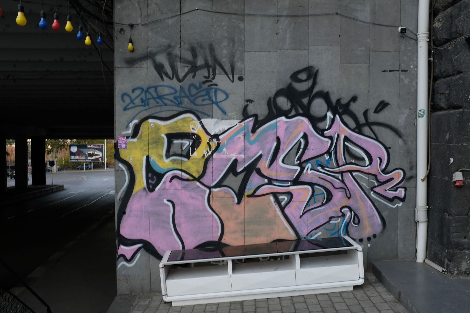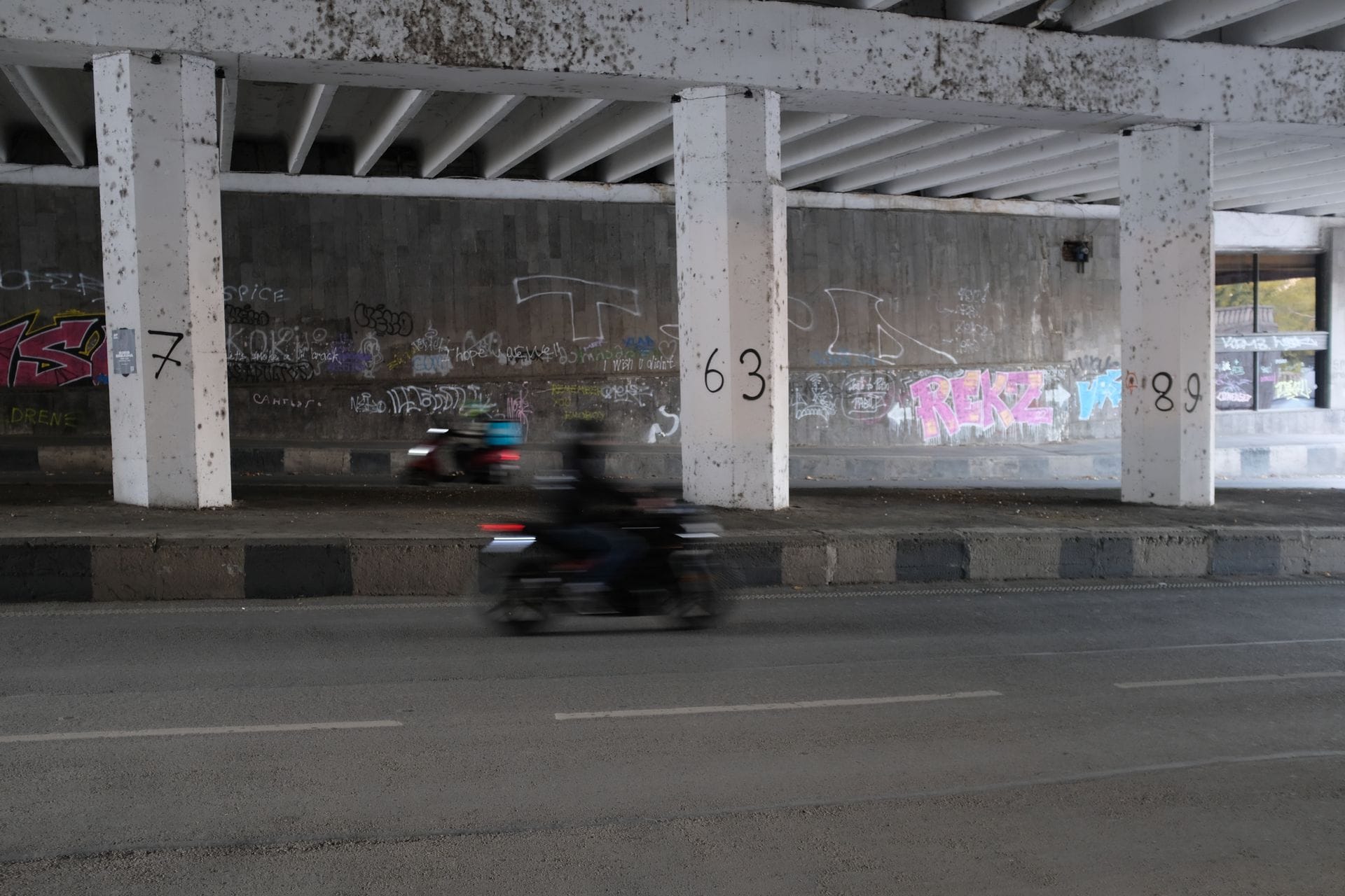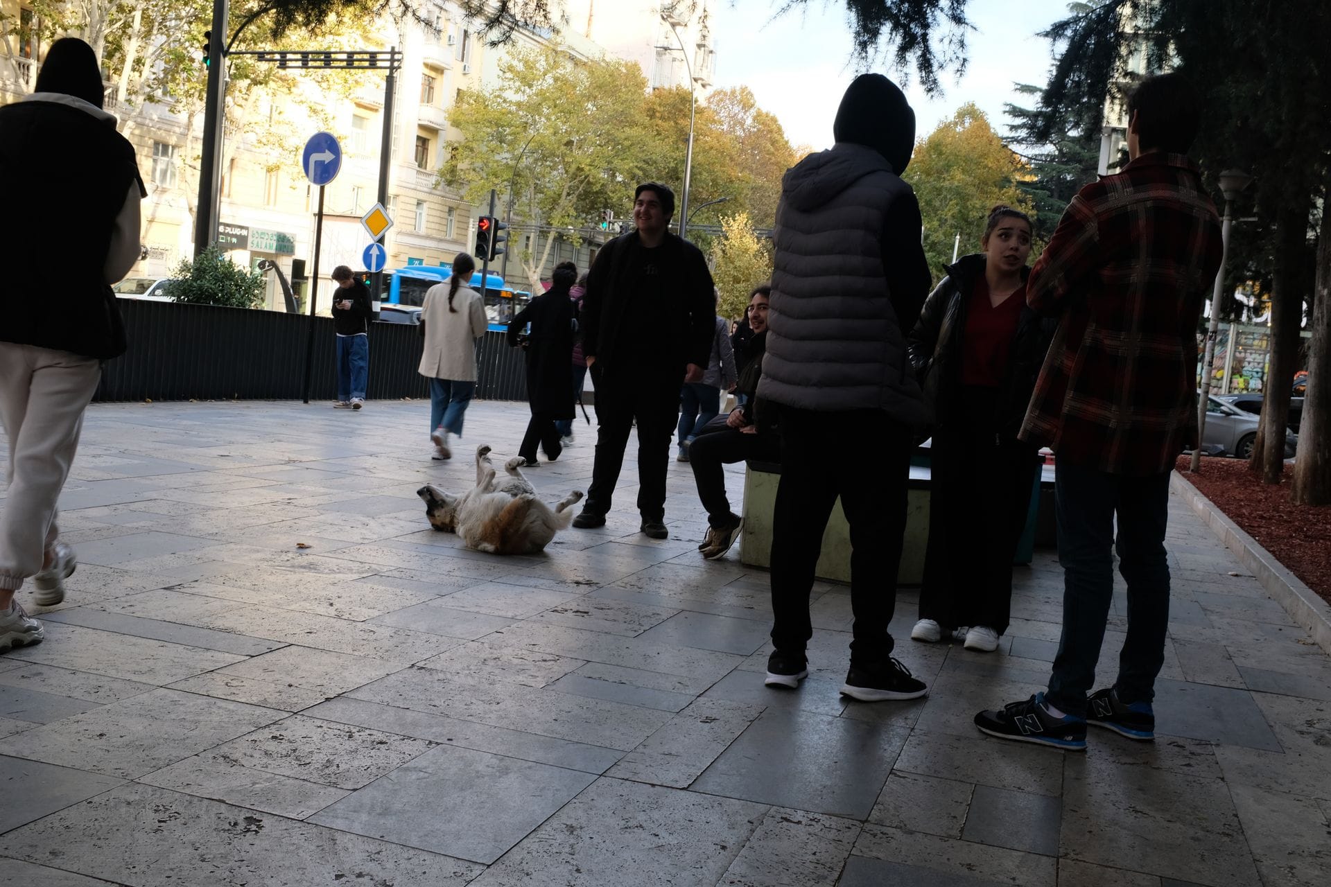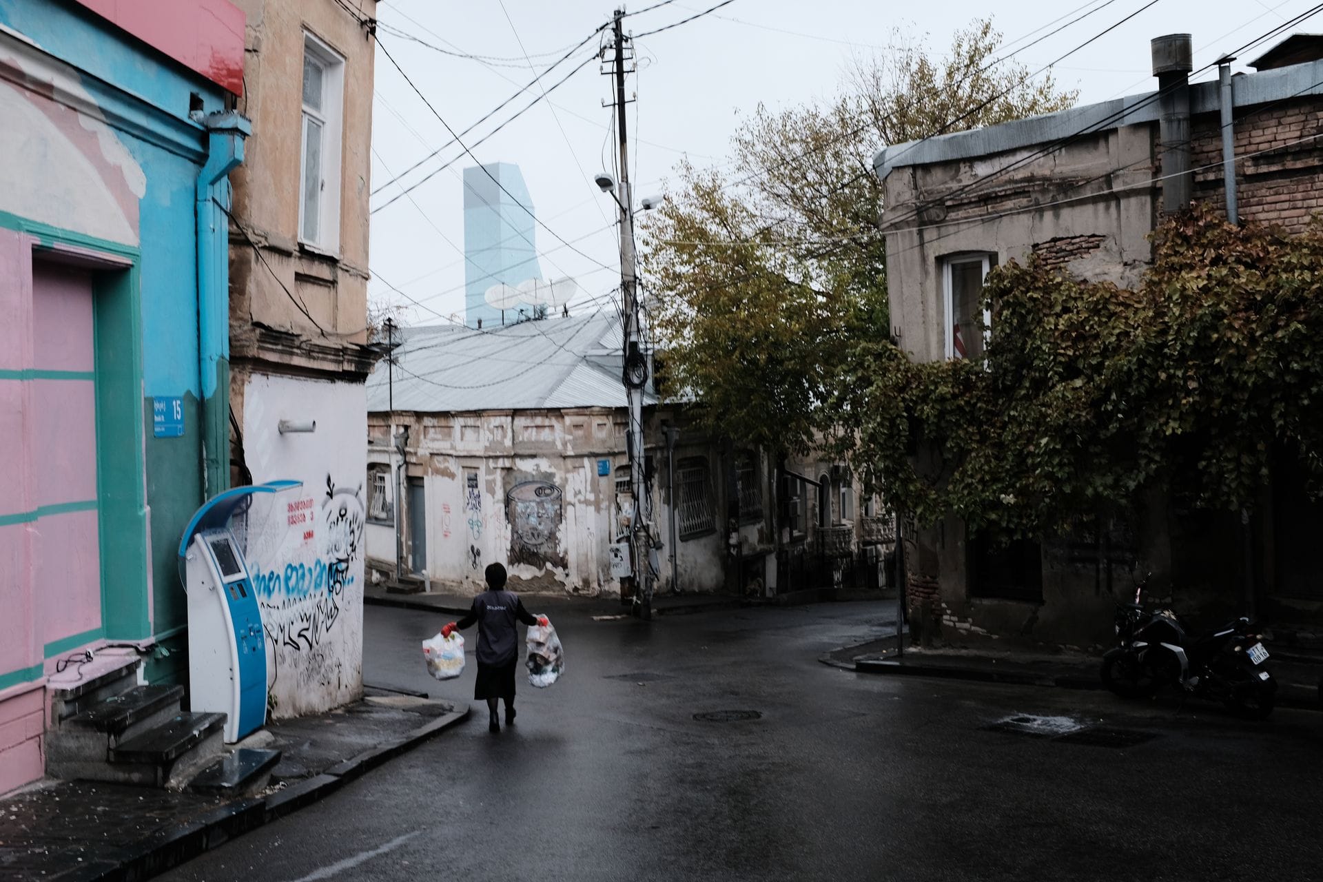 Also wahllos. 2. Tag: sich der Kamera verweigern, bis eine erste Idee kommt. Zum Beispiel die Diptichen Statik (1/125) vs. Bewegt (1/15). Oder und kombiniert mit „fuck putin“ Graffiti in Tiflis am 17.11.2022. Erst ab 3. Tag ist effektives Arbeiten (nach Auswertung des zweiten) möglich. Ergebnisse siehe Grosswetterlage.com: "Face of/f Tbilisi", teils auch "Istanbul revisited".