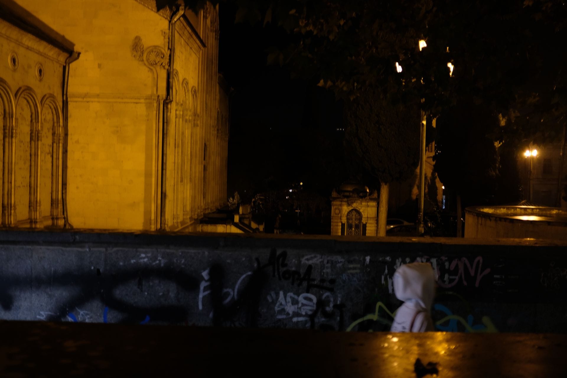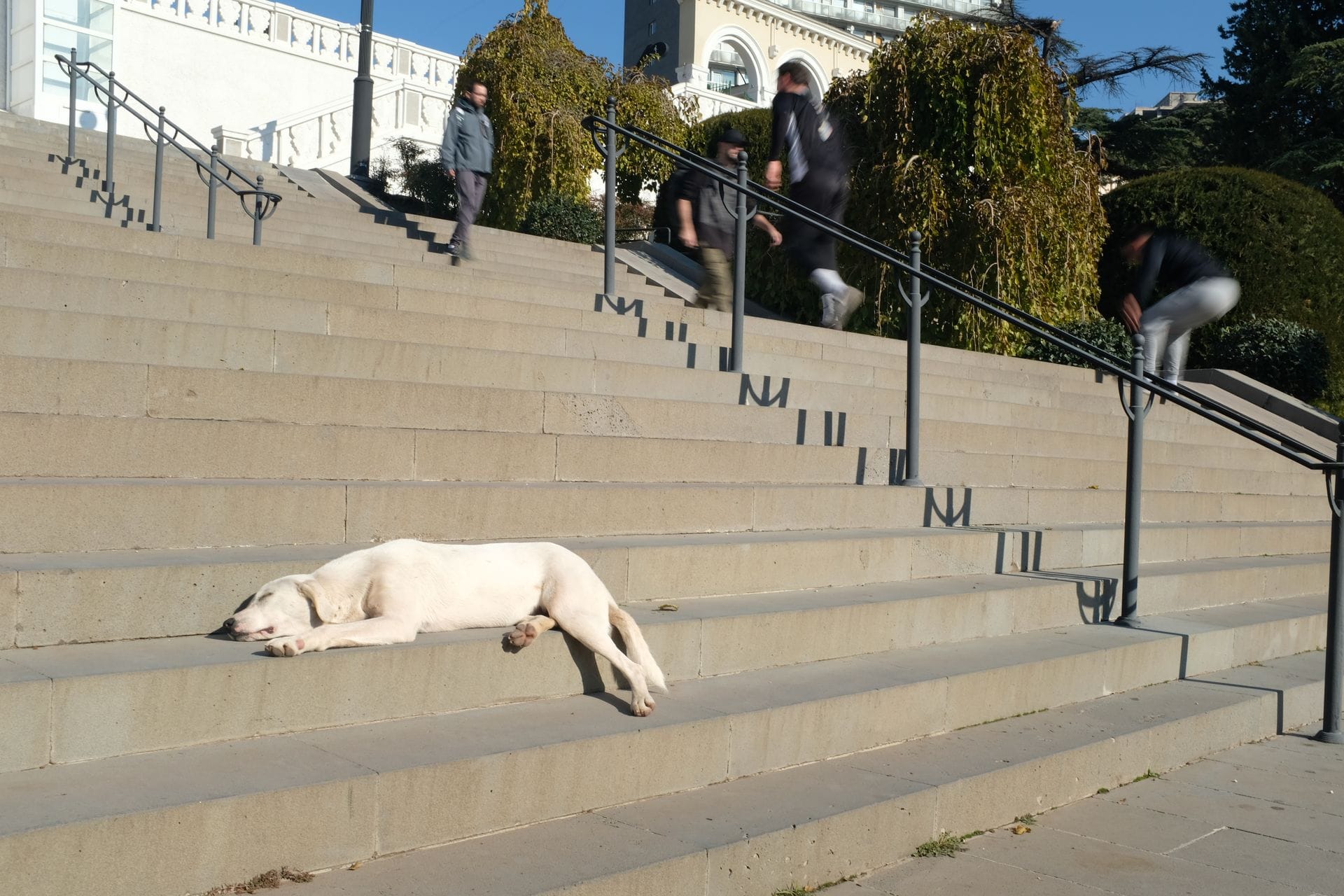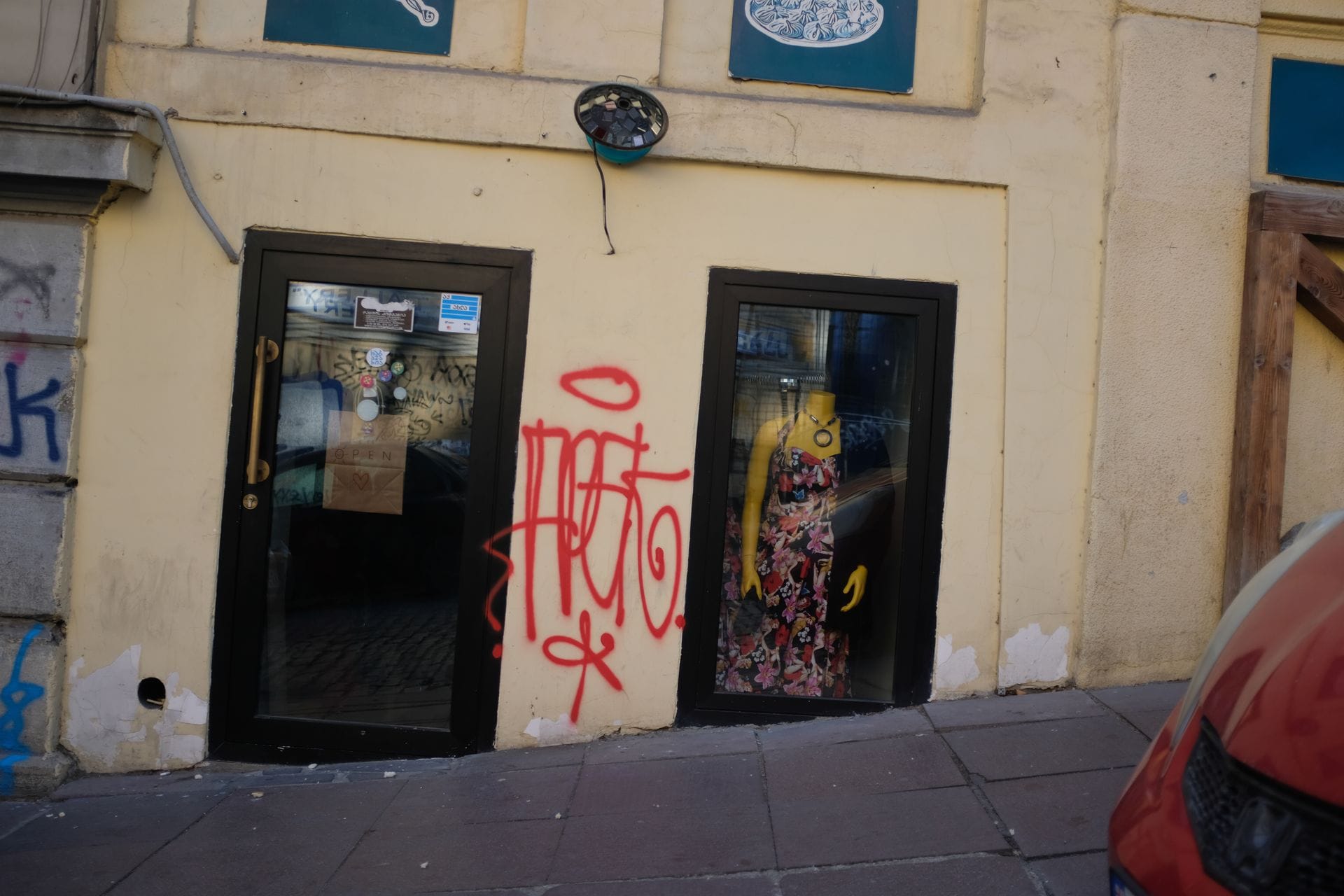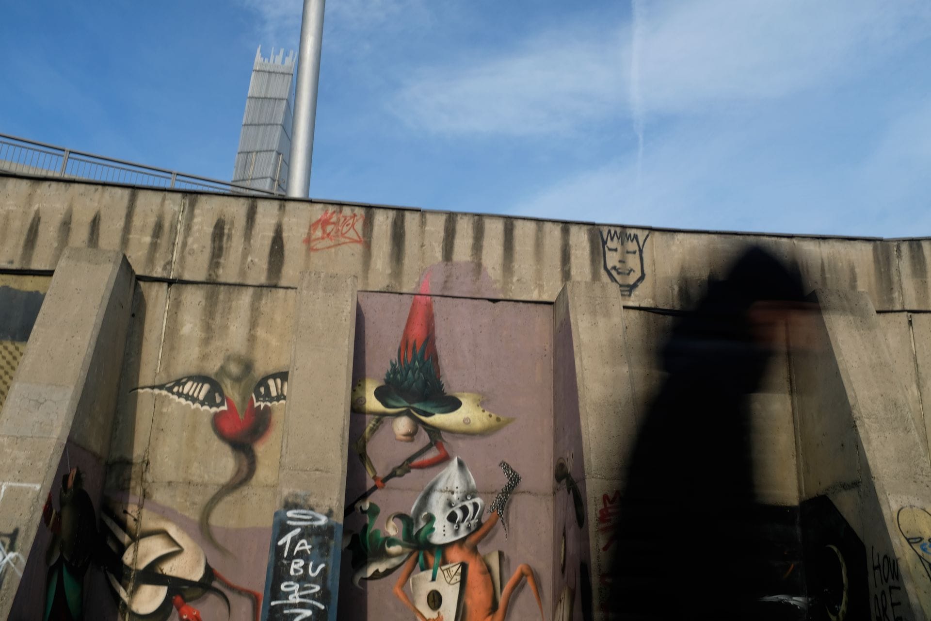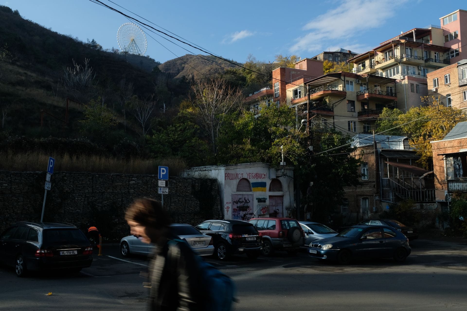 Also wahllos. 2. Tag: sich der Kamera verweigern, bis eine erste Idee kommt. Zum Beispiel die Diptichen Statik (1/125) vs. Bewegt (1/15). Oder und kombiniert mit „fuck putin“ Graffiti in Tiflis am 17.11.2022. Erst ab 3. Tag ist effektives Arbeiten (nach Auswertung des zweiten) möglich. Ergebnisse siehe Grosswetterlage.com: "Face of/f Tbilisi", teils auch "Istanbul revisited".